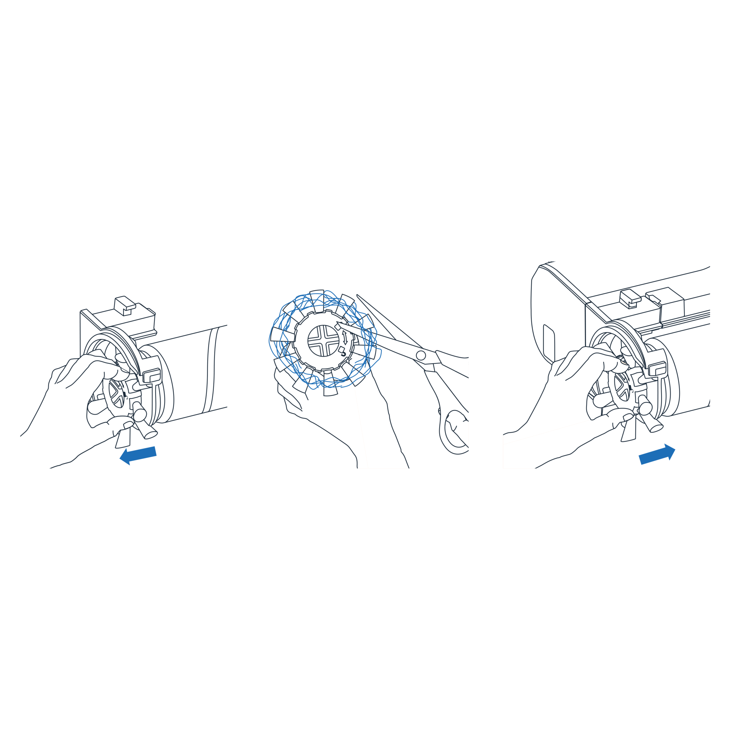 Nach jeder Verwendung: - Reinigen Sie die Walzen mit klarem Wasser und lassen Sie sie 48 Stunden an der Luft trocknen. Einmal pro Woche: - Entfernen Sie Rückstände von den Seitenbürsten mit der speziellen Düse auf der Rückseite Ihrer Bürste (am Sockel befestigt) oder mit einer Schere. - Spülen Sie den Faltenfilter und den Schaumstofffilter aus und lassen Sie sie vollständig trocknen.